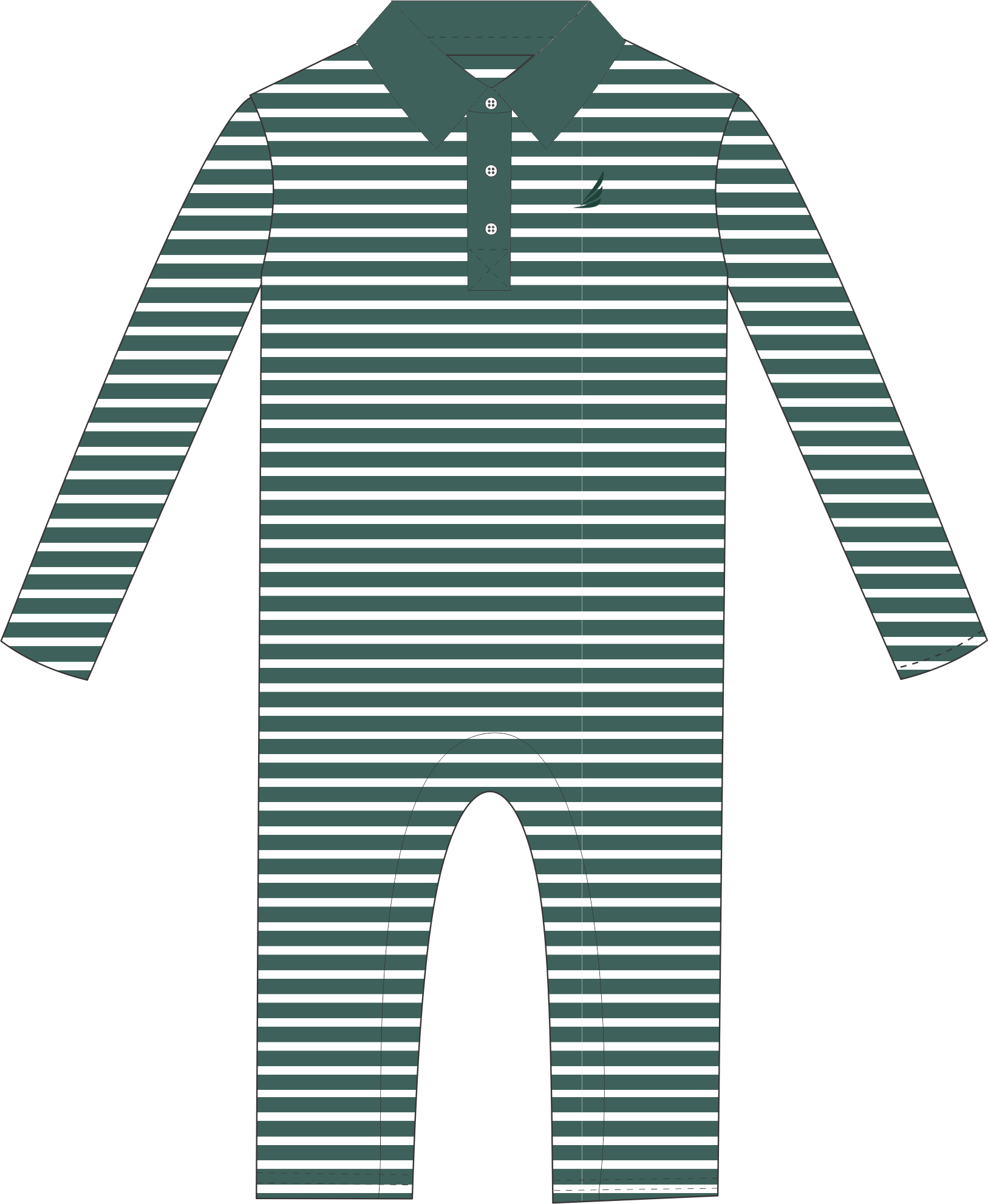 Performance Collared L/S Romper- Pine Stripe